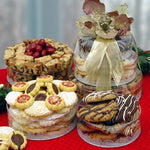 Bakery Stacked Towers with Cherry dipped chocolates, cherry biscotti, gourmet dipped cookies and fancy European cookies.