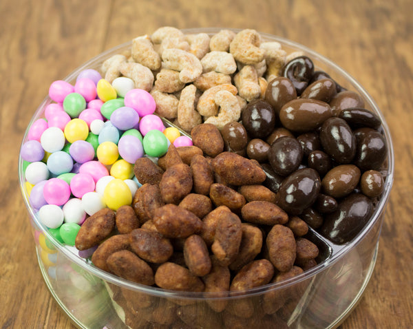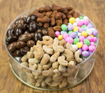 Picture Shown Largest Size Nut And Chocolate Mix! This Round tin makes an impressive display. Perfect gift for any and every occasion! filled with: Honey Glazed Cashews Boston Baked...